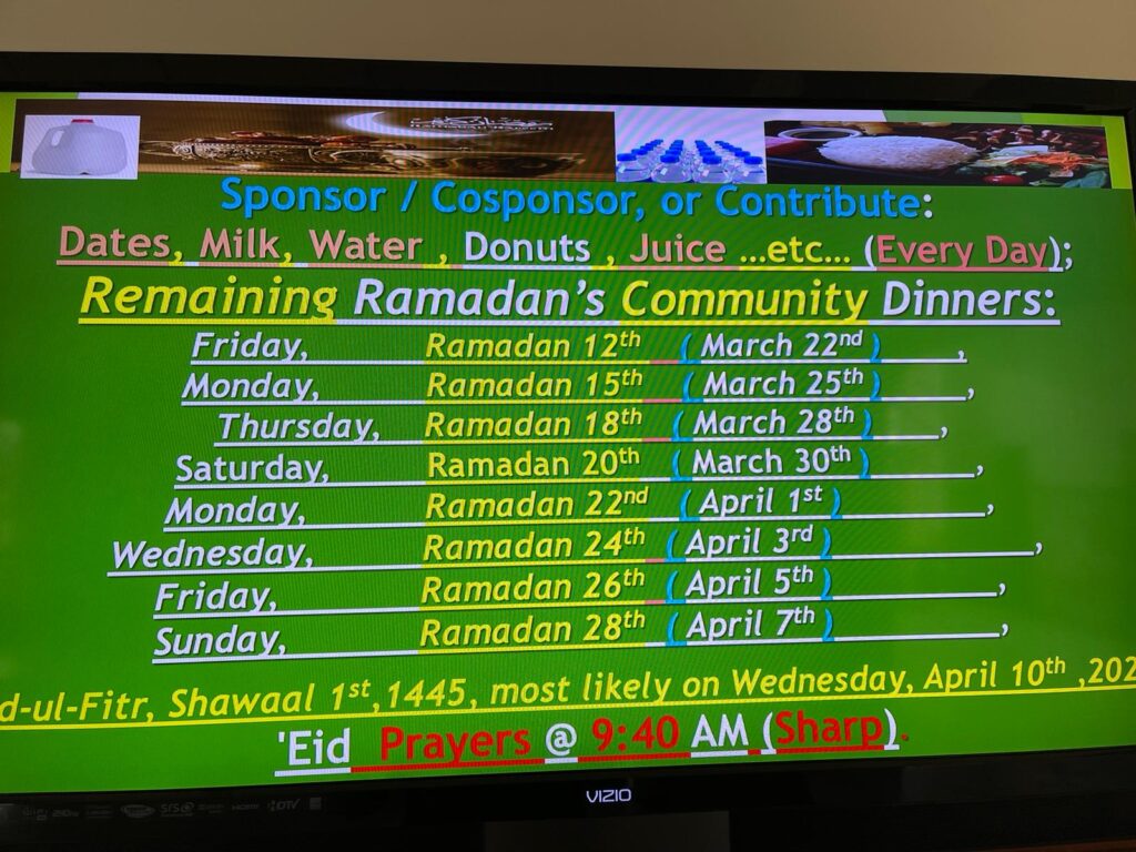 for hosting yesterday’s & today’s Ramadan’s Iftars & dinners. They have generously offered food for about 200 fasting Muslims both yesterday, March 16 and today March 17 at your Stillwater’s Islamic center